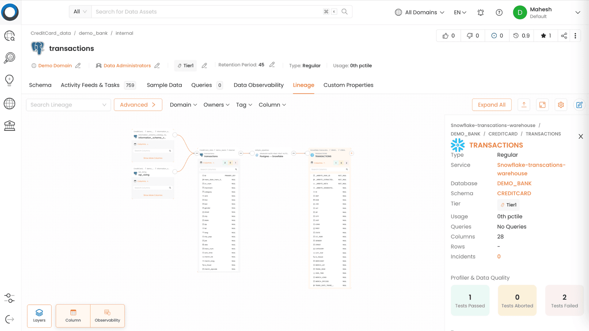 Column-level lineage maps show exactly how data flows through your pipelines, transformations, and reports. During a compliance audit or post-incident review, demonstrate the complete chain of custody for every record — from ingestion through to the number on the regulator's desk.